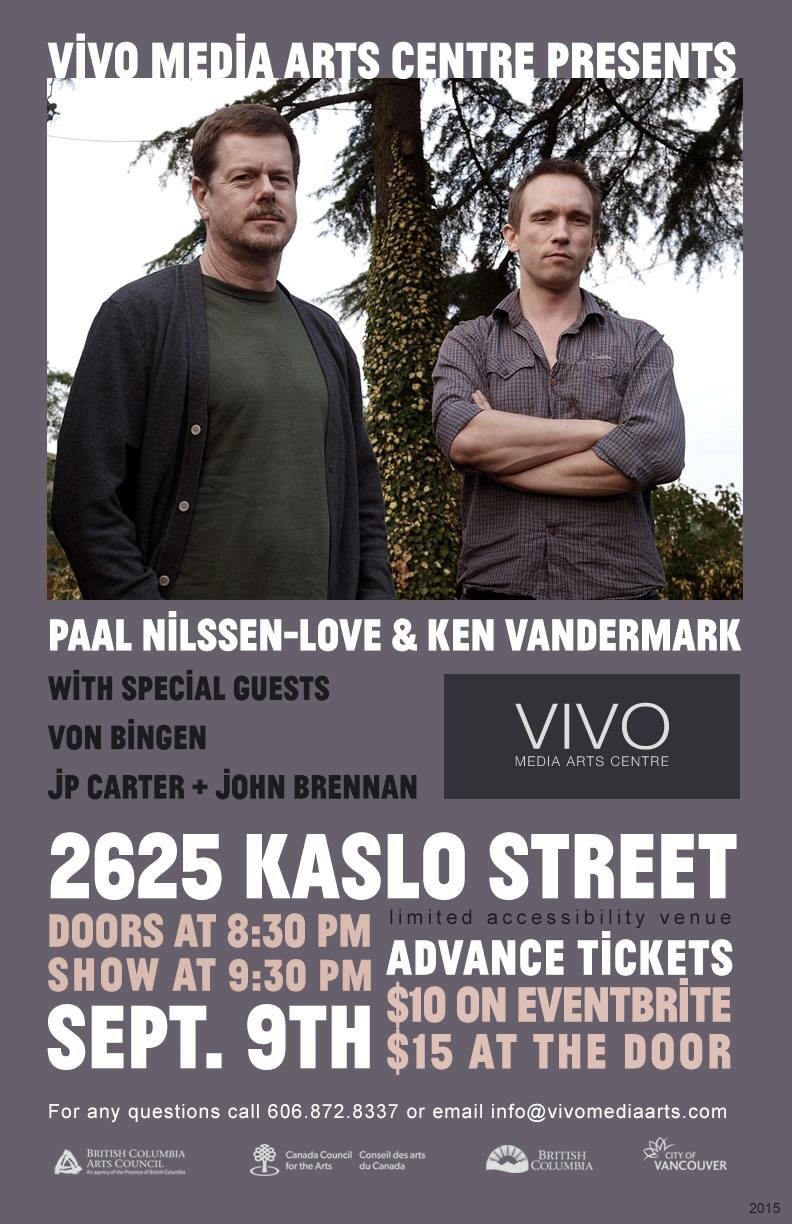On Wednesday Sept 9th I’m playing an improvised duo with drummer John Brennan at the VIVO Media Arts Centre, opening for Paal Nilssen-Love & Ken Vandermark:
