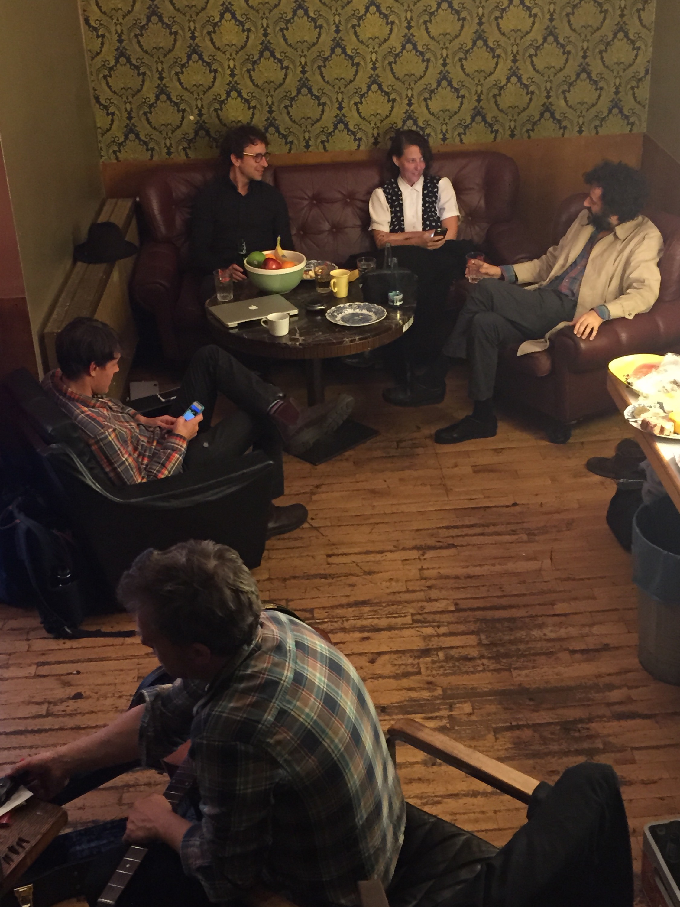1) Here we have your typical green room scene. This is in Berlin, at the Lido. Dave attends to his guitar, while Josh prepares his next DJ set for the bus, assumably. Whilst Daniel regales Joseph and Jennifer with tales of his stay at the Swiss spa, i mean, *ahem*…hospital.