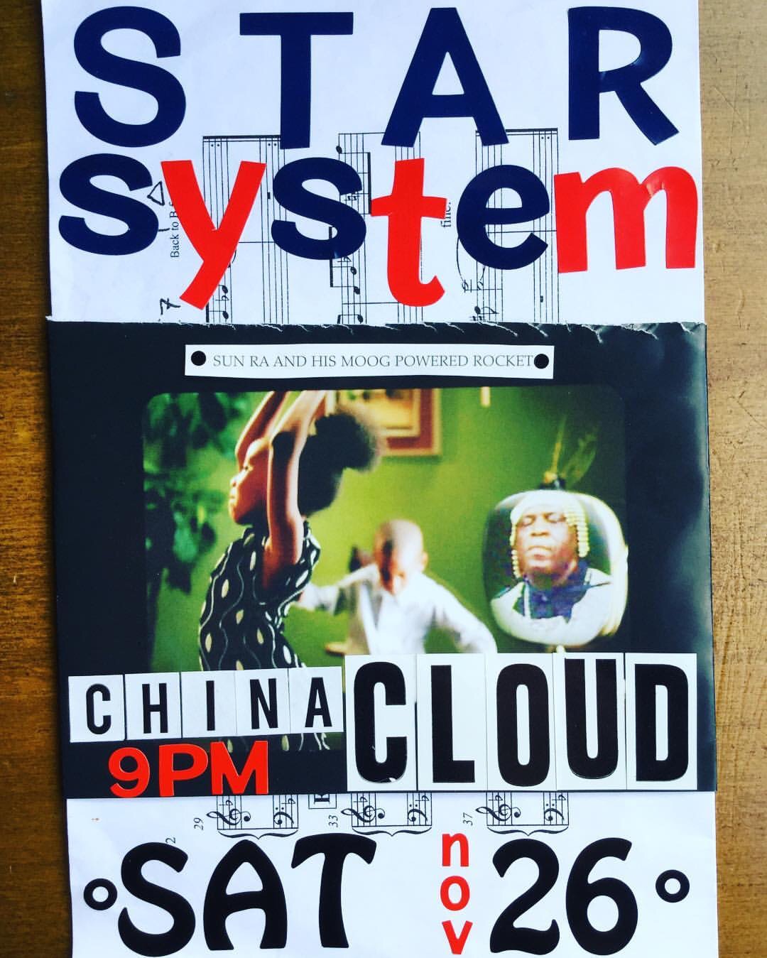 Saturday Nov 26th, also at the China Cloud, it’s Sun Ra’s STAR SYSTEM! Featuring Dan Gaucher, Colin Cowan, Tyson Naylor, John Paton, Ben Henriques, Sam Davidson, Skye Brooks, JP Carter, Tom Wherrett, and Lee Hutzulak. 9:30pm. INFO