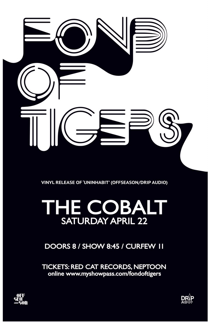 Then later in the month, on Saturday, April 22nd, FOND OF TIGERS (Stephen Lyons/Jesse Zubot/JP Carter/Morgan Mcdonald/Shanto Acharia/Dan Gaucher/Skye Brooks) plays the Cobalt. It’s a vinyl release for our new album Uninhabit (Drip Audio/Offseason). 8pm. [INFO]