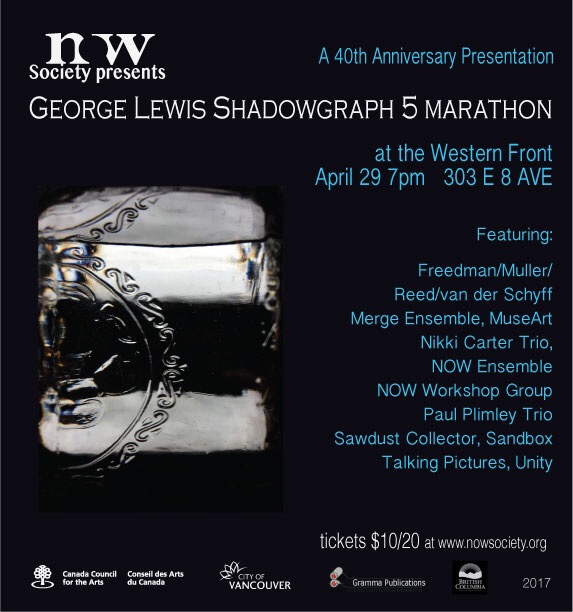 And finally, on Saturday, April 29th, the NOW Society presents a GEORGE LEWIS SHADOWGRAPH 5 MARATHON at the Western Front. In celebration of the NOW’s 40th anniversary! I’ll be playing with the NOW Ensemble alongside Lisa Cay Miller, James Meger & Skye Brooks. 7pm-11pm. [INFO]